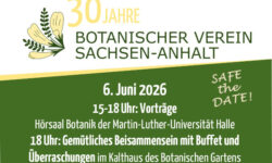 Am 6.6.2026 möchten wir mit Ihnen den 30. Geburtstag des Botanischen Vereins feiern. Mit mehreren Vorträgen im Hörsaal der Botanik in Halle wollen wir uns mit der Geschichte der botanischen Forschung vor der Wende befassen und die Arbeit des Botanischen Vereins seit seiner Gründung würdigen. Anschließend laden wir Sie zu…